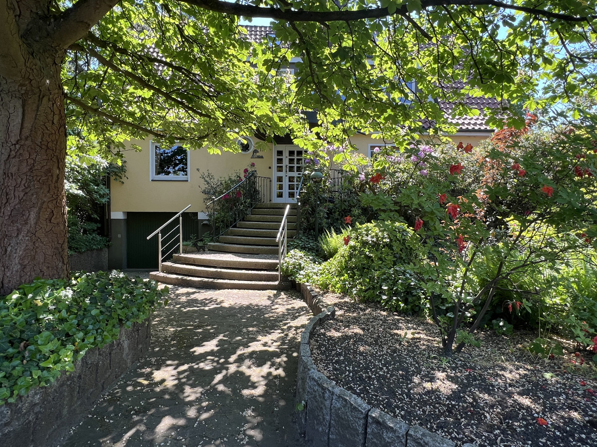 Derzeit ist das Grundstück mit einem Einfamilienhaus bebaut, das jedoch aufgrund signifikanter Wasserschäden im Keller abgerissen werden muss. Dies bietet neuen Eigentümern die Freiheit, ihre Wohnträume auf einer großzügigen Fläche mit bereits bestehenden, wunderschönen Baumbeständen und einer etablierten Pflanzenwelt zu realisieren.