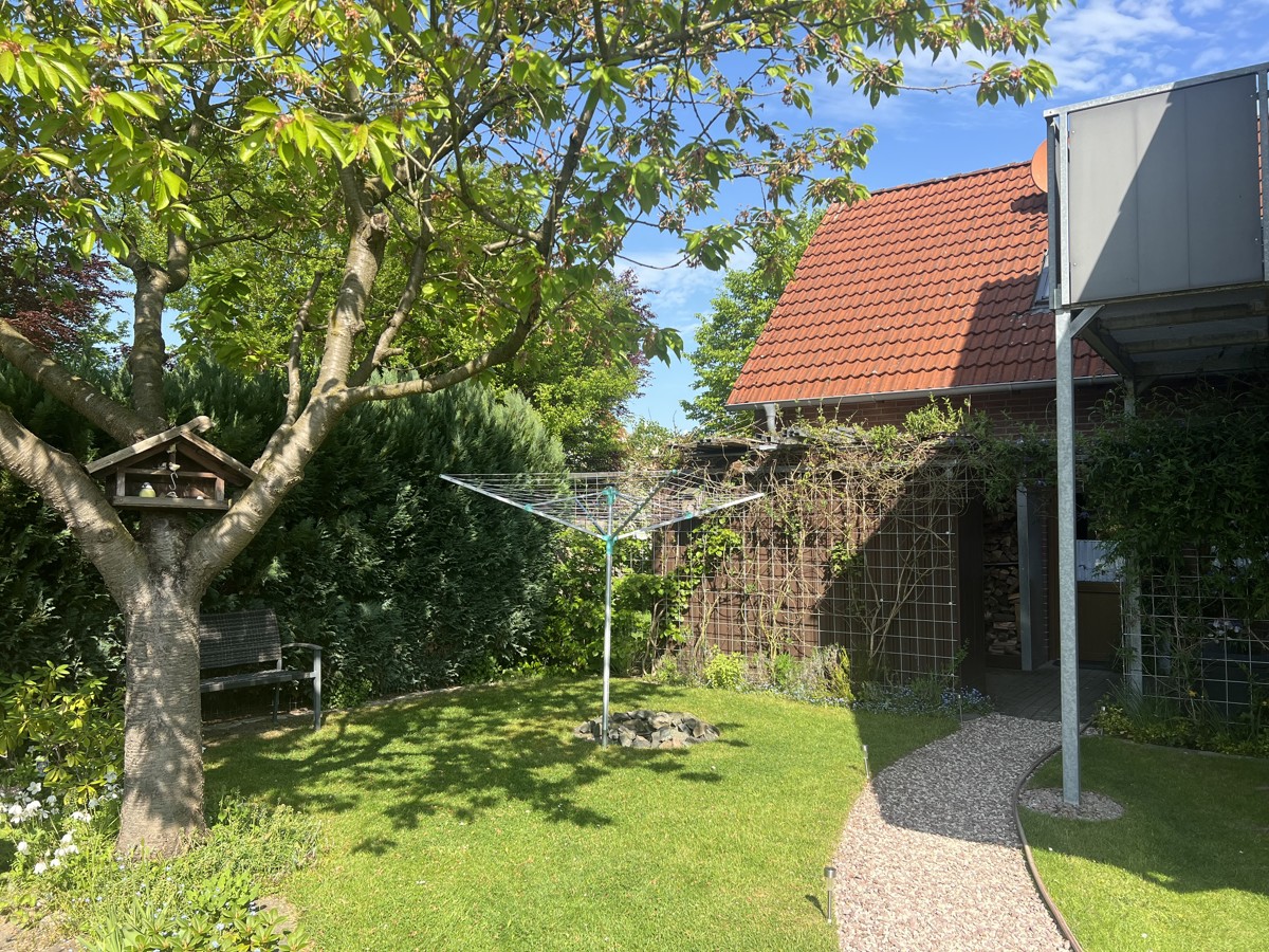Ein echtes Highlight ist der liebevoll gestaltete Garten – mit Platz zum Entspannen, Spielen und Gärtnern. Ob Frühstück auf der Terrasse, Lesen unter dem Apfelbaum oder ein Barbecue mit Freunden – dieser Garten wird schnell Ihr Lieblingsplatz werden.