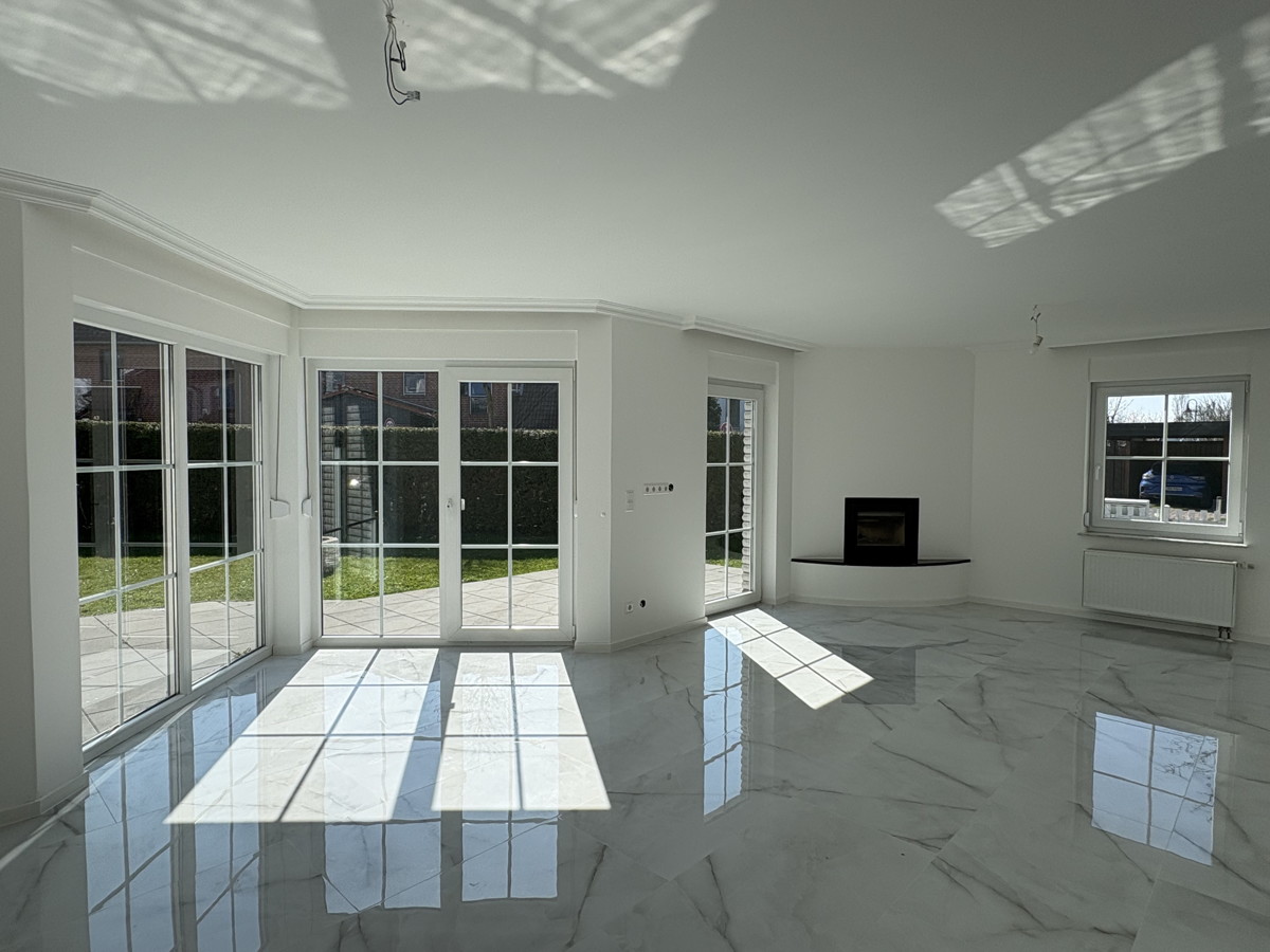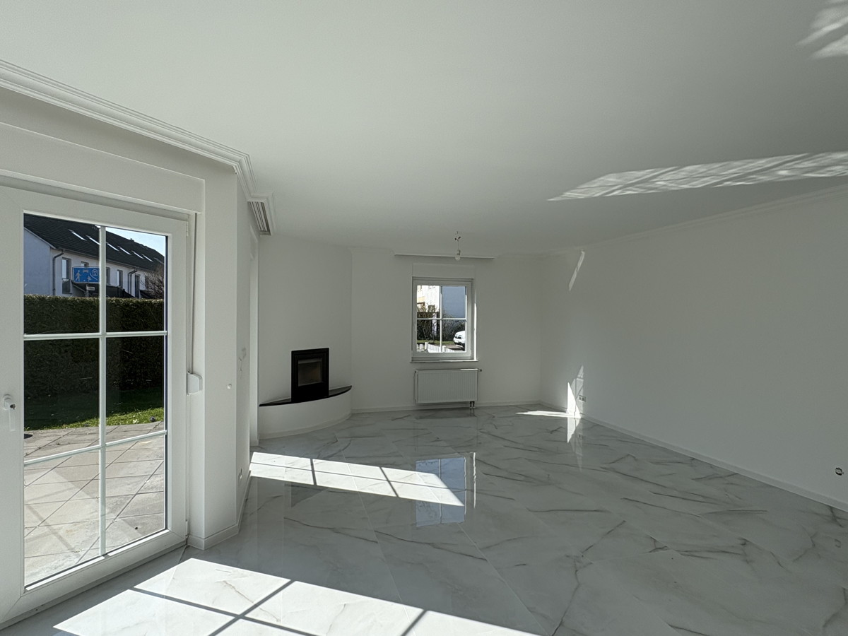 • Wohnzimmer: Ein lichtdurchfluteter Raum mit Kamin, der für Gemütlichkeit sorgt und gleichzeitig für einen offenen Übergang zur angrenzenden Terrasse und dem Garten sorgt.