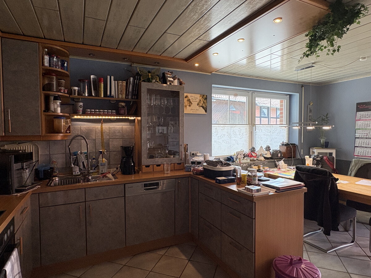 Im Obergeschoss mit 2 Zimmern plus Küche inklusive Essbereich und Badezimmer finden Sie Platz für eine kleine Familie. Die Räume sind alle individuell geschnitten und sorgen mit der teilweisen Dachschrägen für ein wohnlich warmes Gefühl.