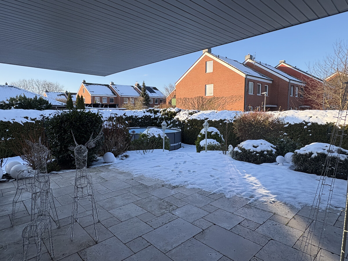 Die Außenanlage präsentiert sich ebenfalls in einem sehr gepflegten Zustand. Terrasse, Eingangsbereich und Kellereingang wurden 2005 umfassend renoviert.