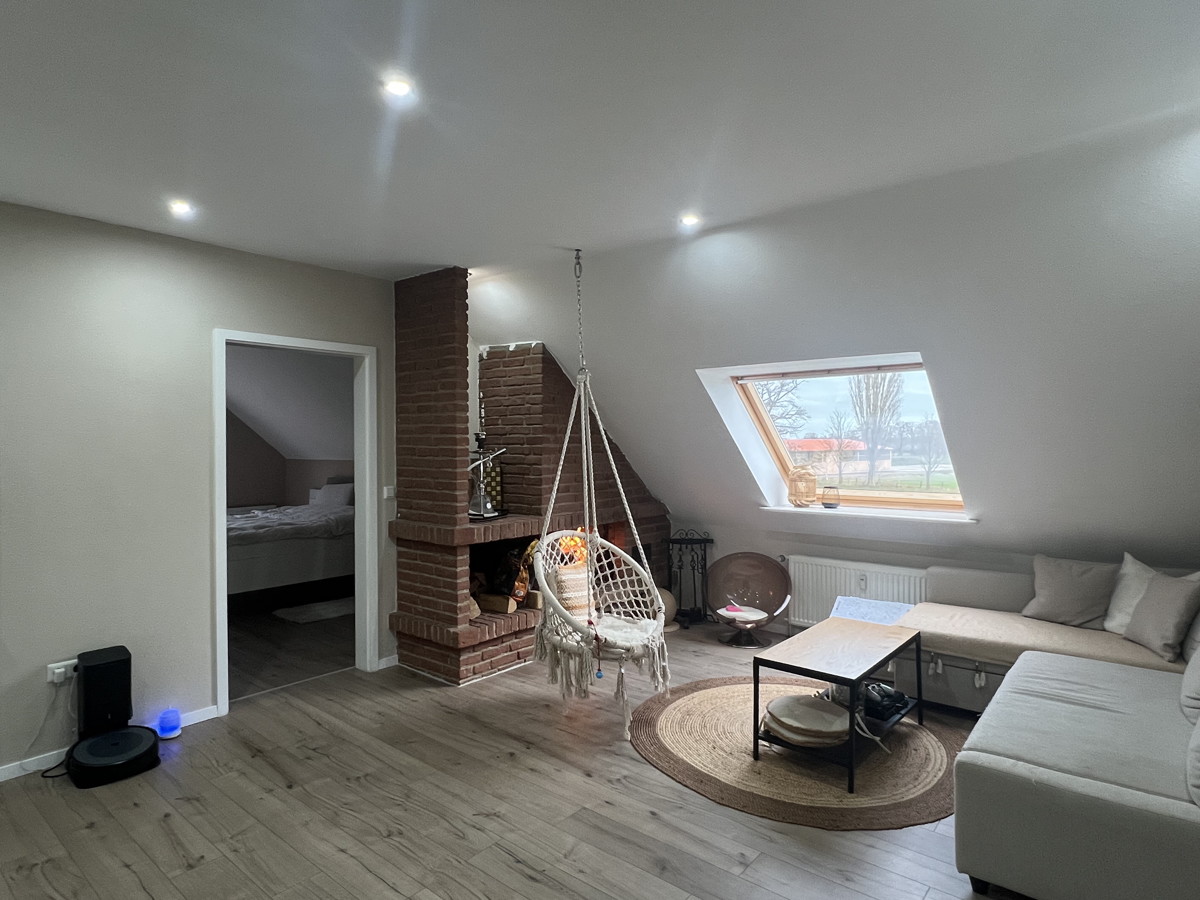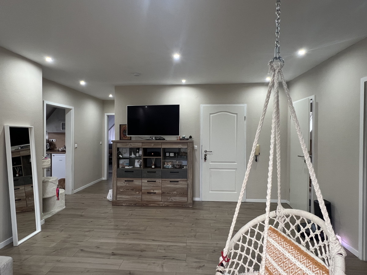 Das Dachgeschoss besticht durch helle Laminatböden und eine moderne Beleuchtung in der Decke.